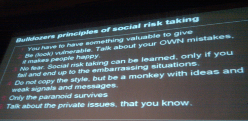 I find Bulldozers principles of social risk taking quite fitting, see here below in the picture: